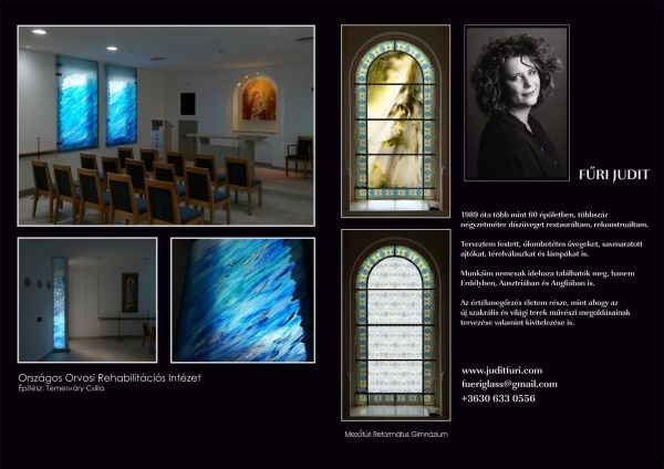 É.M.: Az egyházi és középületi munkákhoz különleges atmoszféra és felelősség társul. Miben más egy templomi ablak vagy egy középület üvegfelületének megtervezése, mint egy magánmegbízásé?