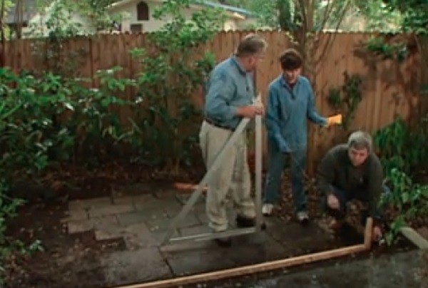 4. lépés: jelöljük be az oszlopok helyét porkrétával és feneketlen vödörrel!