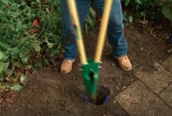 5. lépés: ássunk legalább 90 centiméter mély lyukakat egy oszlop lyuk ásóval!